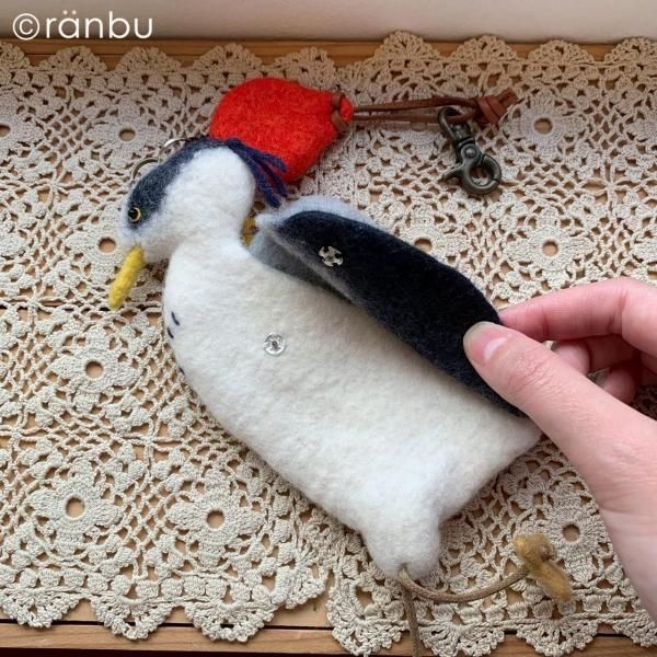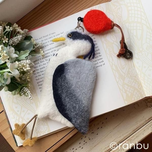 海月羊さん手作りのフェルトでできているアオサギのICカードケースです。