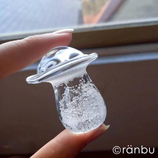 中に気泡が入っていて角度によって見え方が変わるので色んな角度から楽しめる作品です。