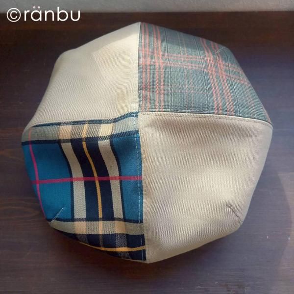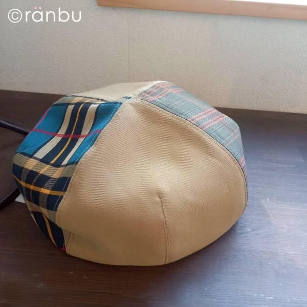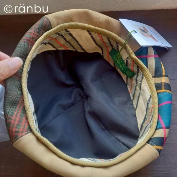 キャメル色のトレンチコートを思わせるチェック柄がかわいいコロンとしたベレー帽。