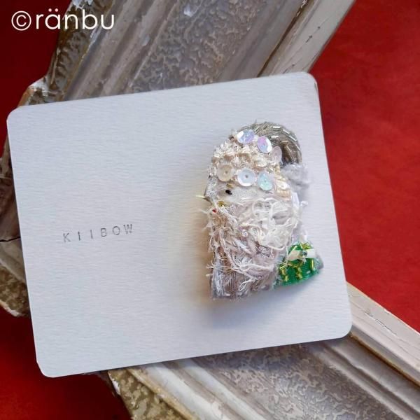スパンコールがきらりと光るとても優しい表情をした白いサンタさんです。